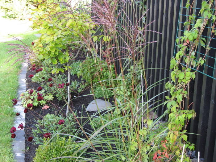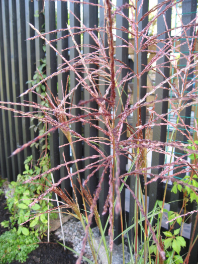 Miscantus sin. “Silberspinne”. Prydgress med avlangt og solid grønt blad. Høyde inntil 1,5m. Dekorativ solitærplante med flott vintersilhuett. Aksen er silverrosa overgående til brunhvit. Denne ble plantet i fjor høst og jeg synes den har kommet godt i gang på dette året. Den har allerede fin prydverdi.
