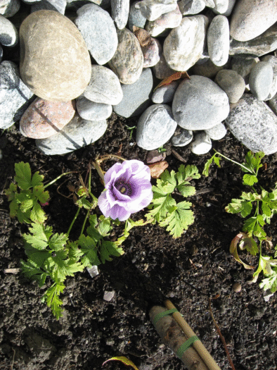Denne ble bestilt gjennom Hageglede i vår, plantet i solveggen og frem tittet noen hvite blomster og en lilla. De er ikke så store ennå, men jammen har de blomstret i hele sommer og høst. De har ikke gjort seg ferdige for vinteren ennå.