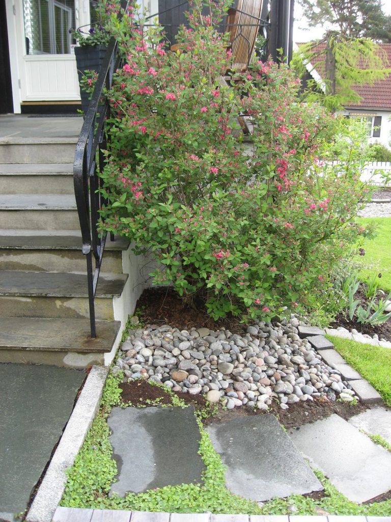 …og så er jeg jo litt fornøyd med arbeidet jeg gjorde i fjor, fjerne gress og legge aviser og stein, samt plante murtorskemunn i stedet for gress i trappeavsatsen.