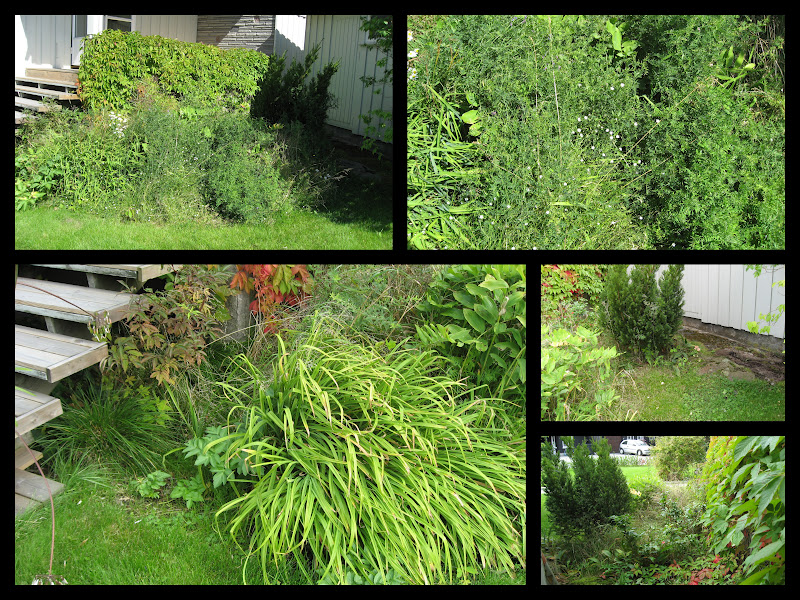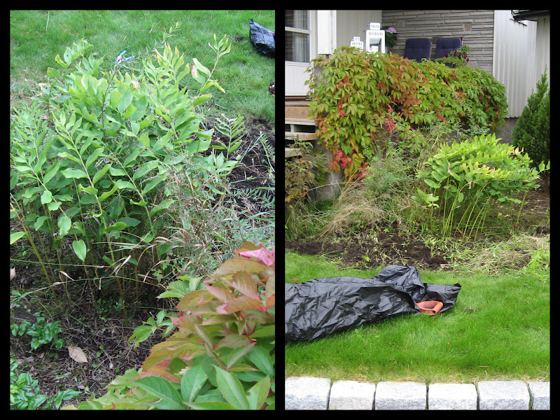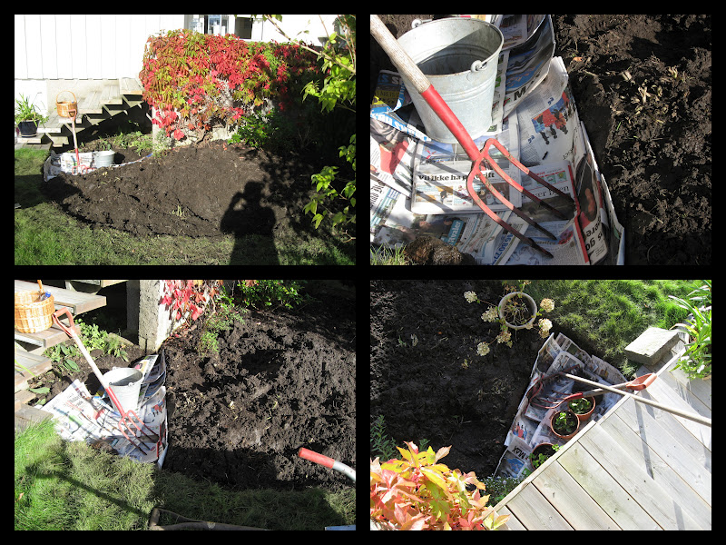 En nabo har hentet noen storkonvall og dagliljer, men det meste måtte graves opp, eller forresten, dagliljene har jeg latt stå, orket ikke grave mer, så får jeg se hva jeg gjør med dem etterhvert.