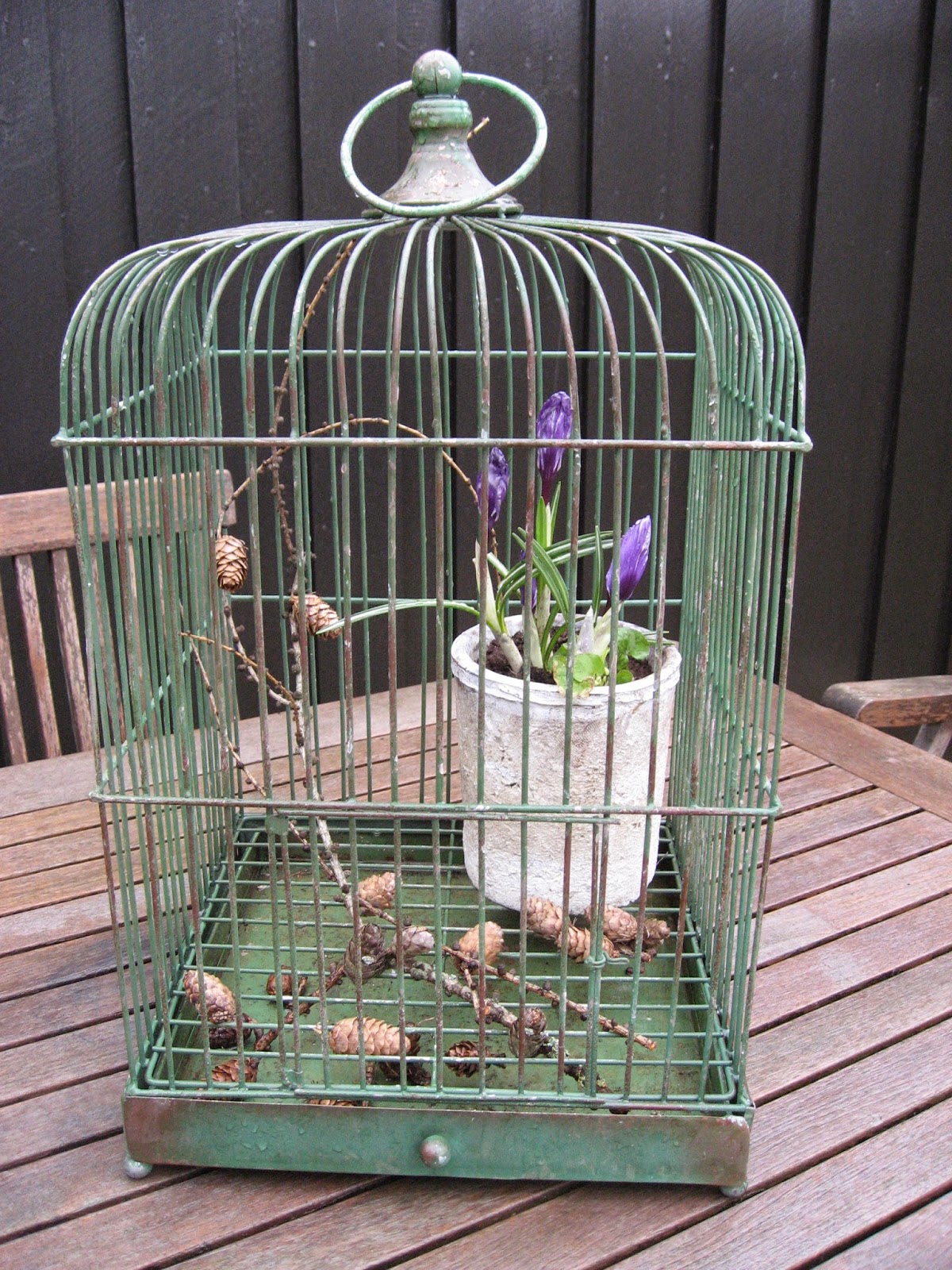 Så flott fuglebur! Litt trist å se en vakker plante i fangenskap, hehe, men dekorativt var det jo 🙂 Ellers ser det ut til at våren har fått godt tak hos deg. Blir spennende framover nå! Nyt helgen!