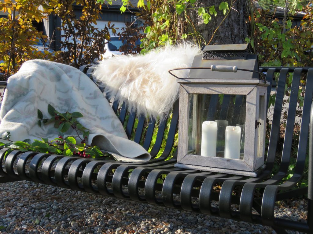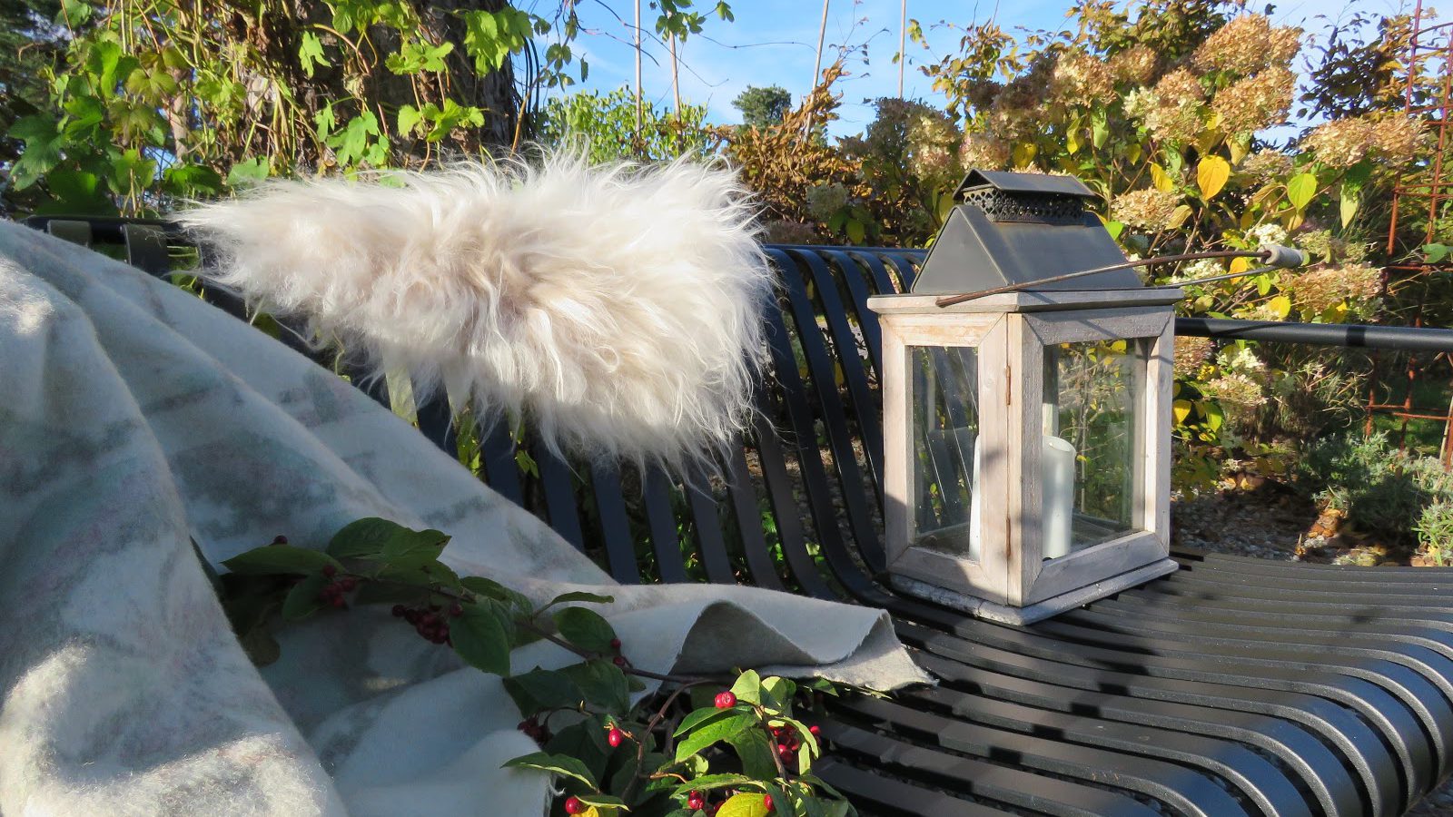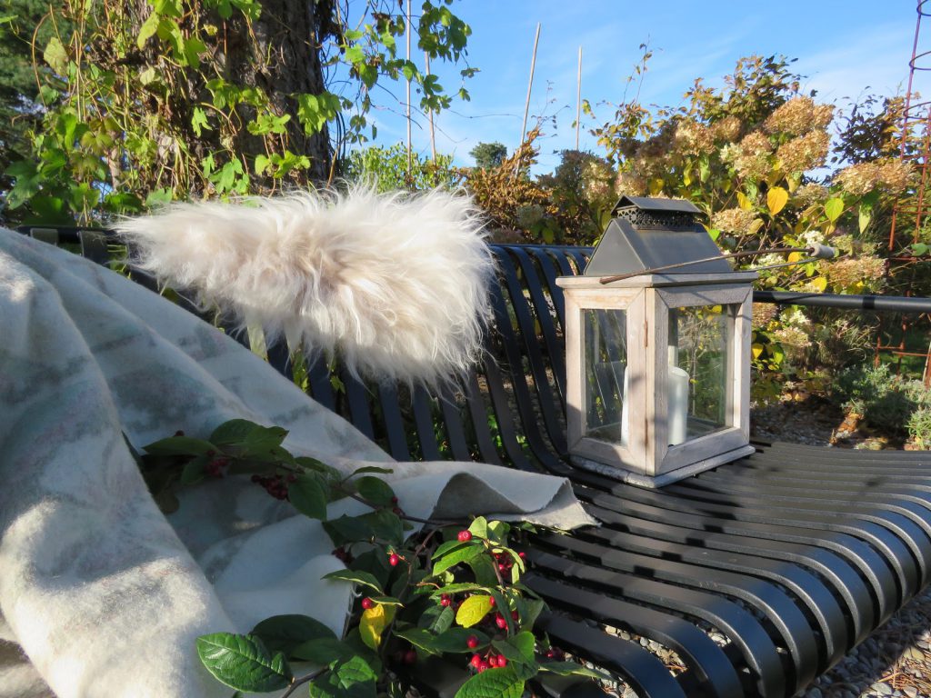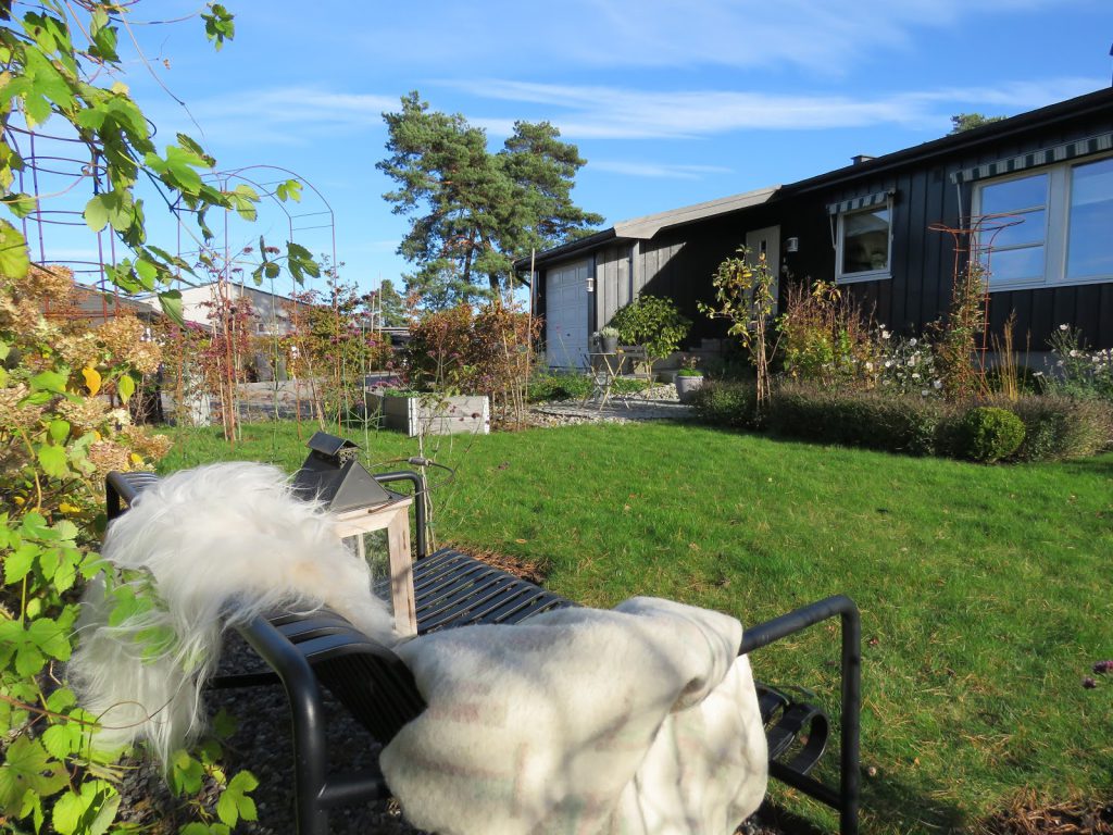 Denne sitteplassen kunne også få pynte seg høstfin når solen strålte dagen lang og jeg kunne nyte det fine været i hagen sammen med 7-åringen, som kommer på visitt titt og ofte.