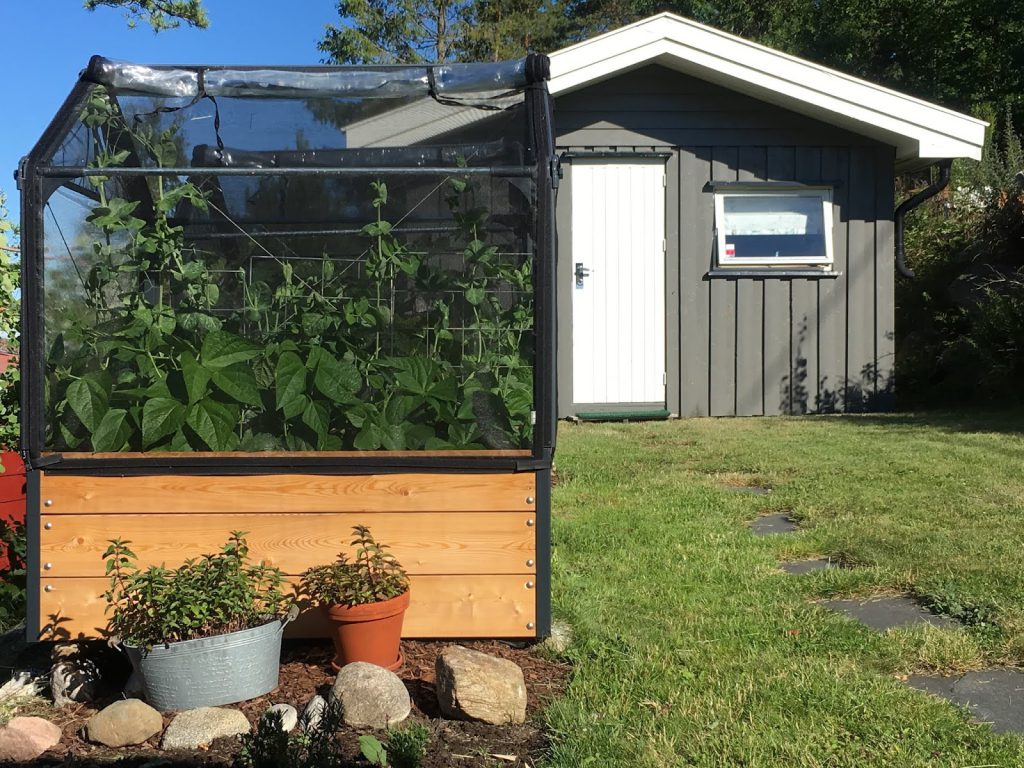 Nå har jeg små drivhus som verner mot utøy fordi den har et slags nett rundt seg og plast som kan rulles ned ved behov former varme.