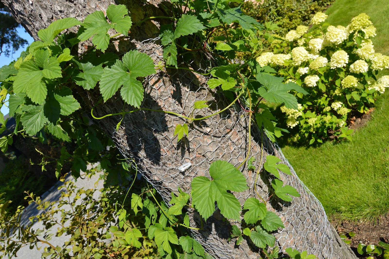 Innimellom lar jeg meg imponere storveis av de flotte latinske navnene på plantene, tenk Humle – Humulus lupulus. Ren poesi, spør du meg. Jeg er veldig begeistret for denne slyngplanten, det er kun en ting du bør være obs på; Den sprer seg raskt via røttene. Så den passer et sted hvor du har mulighet til å avgrense den, slik jeg har her rundt furua.