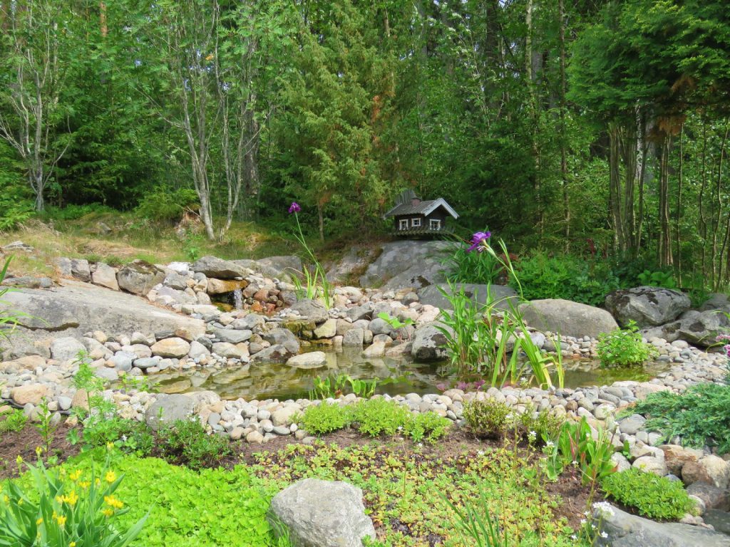 For ikke så lenge siden satte Vidar i gang med å lage en fiskedam ved inngangspartiet til boligen. Jeg lar meg villig inspirere til dam eller et eller annet med vann i Furulunden. Det er jo lov å drømme…