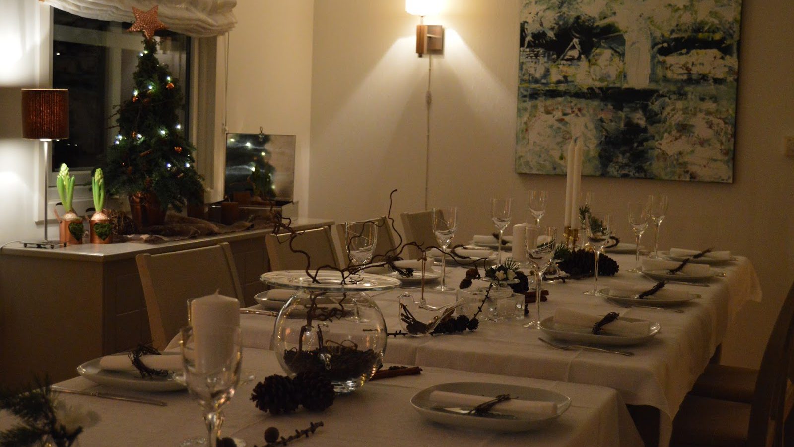 Du vil kanskje ha flere glass på bordet samt flere sett med bestikk, men sånn som du ser det her, er det altså her hos oss, denne desemberdagen.