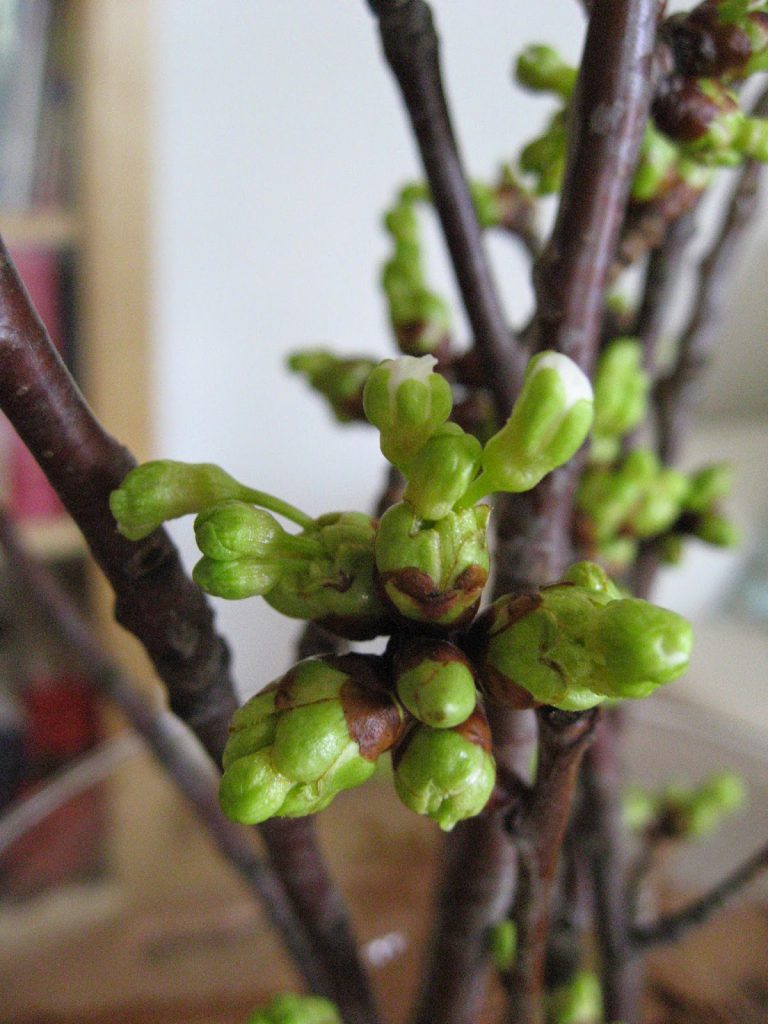 …og den gleder oss sammen med noen kvister fra et morelltre.