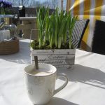 Påskeliljer er en gave fra ei venninne som var på besøk i palmehelgen, mens kaffe latten er ny av dagen!! For en herlig solskinnsdag med utsikt til Skjebergkilen. Hageland har nettopp åpnet i byen vår, og der har de iris... ...for et festfyrverkeri av en farge... ...med "pletter i …