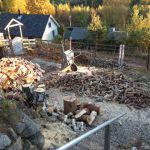 Det er litt av en jobb å kviste, kløyve og hogge ved. Etter felling av 6 trær er de 2 furuene så godt som klare for tørking. Mannen får god trening med kløyving og hogging. Kvistkvernen har også vært god å ha. Til neste år blir det å frakte store deler av veden til bolighuset. Det er dog begrenset bruk av ved på …