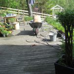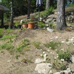 Jeg har vært noe usikker på hva jeg skal gjøre med dette området av hyttehagen. Jeg vet heldigvis av erfaring at er man usikker, så vent en halv før du gjør noe. Ideer og tanker kommer gjerne etterhvert som man bruker området og ser hva det duger best til. Her kan man gå, både fra hovedinngangen og fra verandaen for …
