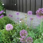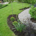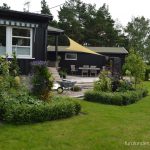 ...heldigvis for oss, så hadde tidligere eiere fjernet bærbærrishekken rundt tomten... ...likeledes var det lagt ny gressplen og beplantet noen roser og rododendron inn til stuevinduene... ...samt en sti med belegningsstein fra den ene garasjen til inngangspartiet... ...bærbærrishekken var byttet ut med en …