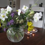 Den eneste blomsten som ikke er fra hagen, er den lilla hortensiaen... ellers er det bare å erkjenne… …at høsten er her og at det ikke blir mange flere muligheter til å plukke inn blomster fra hagen… …men det er en tid for alt… og innevær, peiskos og stearinlys er heller ikke å forakte. For ikke å snakke …