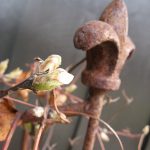 Det er noe kriblende fint å se de første klematisspirene mot det rustne, tidligere CD-stativet... ...og tenke seg at den blir noe ala denne - riktignok hvit, men ikke helt lik. Jeg har strødd litt aske på peonrøttene, det skal være godt for dem, kalkholdig... ...den nakne sirkelen som ble påbegynt …
